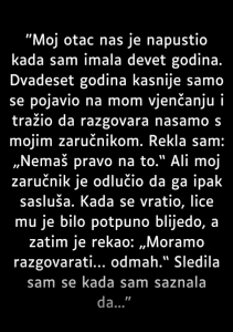 Porodični odnosi uromantičnim vezama često su kompleksni i emotivno nabojeni. Kada se dvije porodice spoje, očekuje se međusobno poštovanje i podrška — ali to nije uvijek slučaj. Jedna žena odlučila je otvoreno ispričati kako je to bilo rastati se s mišljenjem svog oca koji nikada nije prihvatio njenog supruga, vjerujući da ona zaslužuje „boljeg muškarca”….
