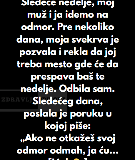 “Sledeca nedelja je za odmor mene i mog supruga, A svekrva je pozvala i trazila…”