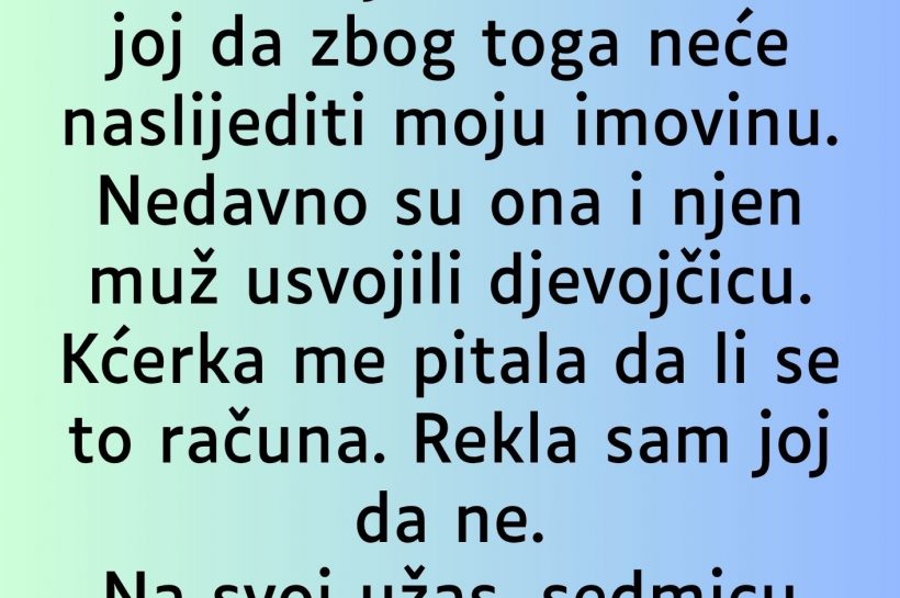 “Moja kcerka ne moze da ima svoju biolosku djecu i ja sam joj rekla o mojoj imovini ne razmislja jer joj nista nece pripasti…”