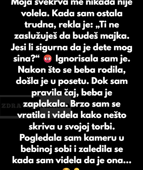 Moja svekrva me nikada nije voljela. Kada sam ostala trudna onda mi je ona rekla: “Ti ne zasluzujes nikada da budes majka? Da li si ti uopste sigurna da je to dijete od mog sina? ” Naravno da sam na sve to presutila i odlucila sam da pustim da sve to prodje. Nakon sto se…
