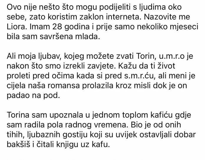 Kada sam izgovarala “Da” svom suprugu Torinu i mislila sam da zivim bajku i ono nesto najljepse. Samo nekoliko sati kasnije moja najljepsa bajka se pretvorila u nocnu moru a tri dana poslije desila se prica koju ni sama nisam mogla da objasnim ni ti da zamislim. Ja sam Torina upoznala u kaficu gdje sam…