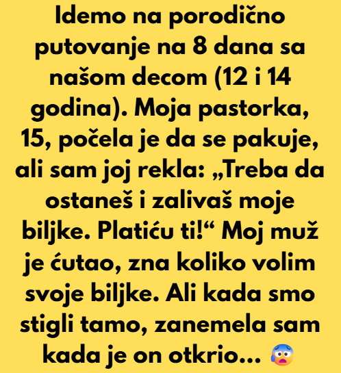 Mi smo odabrali da idemo na porodicno putovanje u SPANIJU i to na osam dana sa nase dvoje djece 12 i 14 godina. Moja pastorka od 15 godina pocela je tada i sama da se pakuje a ja sam joj rekla: “Ti treba da ostanes u kuci da zaljevas moje biljke. Platit cu ti sve…