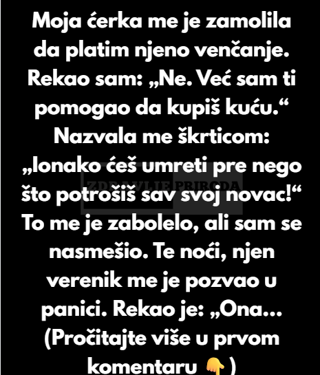Kcerka me molila da platim vjencanje a ja sam odbio jer sam vec im kupio kucu! Ja nisam bankomat i zelim da me cijene!