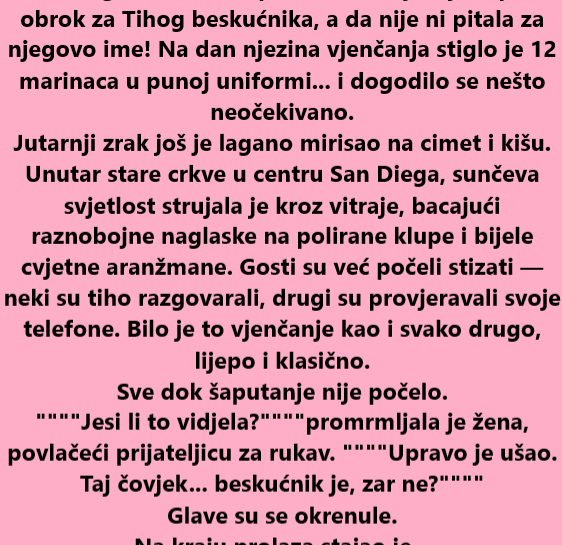 Sest godina pekarka je ostavljala obrok za beskucnika a nikada ga nije pitala kako se zove-Onda na dan njene svadbe desilo se nesto neocekivano!