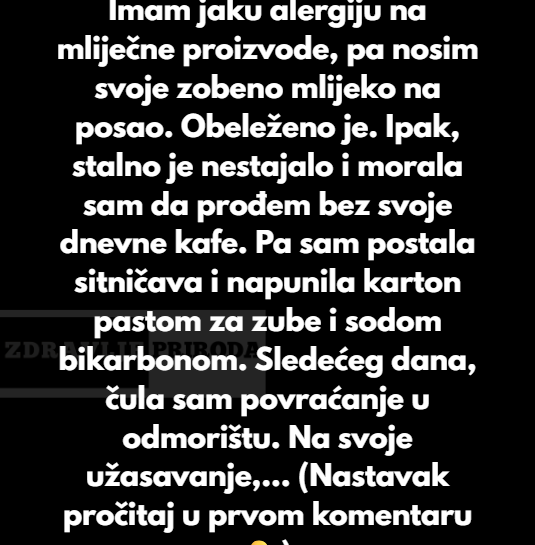 “Imam veliku alergiju na mlijeko i svoje zobeno nosim na posao, SHVATILA sam da mi kradu i rekla im a onda…”