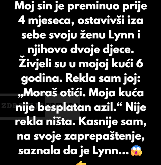 Kada mi je sin poginuo izbacila sam njegovu porodicu iz kuce, jer to nije ustanova za zbrinjavanje!