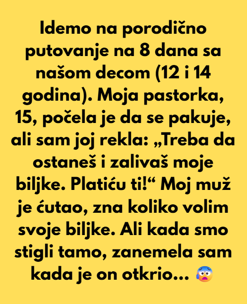 Mi smo odabrali da idemo na porodicno putovanje u SPANIJU i to na osam dana sa nase dvoje djece 12 i 14 godina. Moja pastorka od 15 godina pocela je tada i sama da se pakuje a ja sam joj rekla: “Ti treba da ostanes u kuci da zaljevas moje biljke. Platit cu ti sve to…”