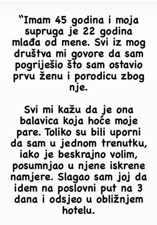 Postoje priče koje nas podsete koliko su ljudski odnosi složeni i krhki. Jedna od takvih dolazi od muškarca koji je odlučio da podeli svoje iskustvo u braku sa suprugom znatno mlađom od njega. Njegova ispovest nije samo priča o ljubavi, već i o unutrašnjem sukobu između poverenja i sumnje, između želje da se voli i potrebe da se zaštiti od mogućeg razočaranja.
