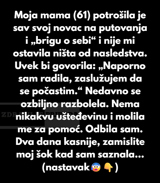 Otisla sam kod svekrve i svekra i pokazala im slike a tada je moj suprug bio na sluzbenom putu i rekla sam da zelim da se razvedem sada-