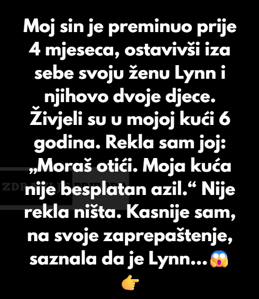 Moj sin od 35 godina je poginuo u saobracajnoj nesreci i sve se to desilo prije 4 mjeseca. Ostala je iza njega supruga i dva mala sina. Zadnjih sest godina svi su skupa zivjeli samnom u mojoj kuci.