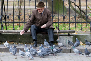 Ovo je starac koji je svaki dan sjedio na klupi ispred bolnice u parku i hranio tog goluba. Bez mnogo rijeci bez obaveza samo je to bila tisina i hljeb i pogled koji bi govorio mnogo vise od bilo kojeg jezika.