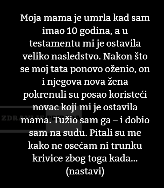 Uz cijelu podrsku majcine porodice i nekoliko rodjaka sa oceve strane pokrenula sam tuzbu radi oca. “Jednostavno sam ga tuzio samo radi novca…”