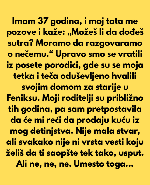 Dok je gledala telefon na stolu, prvo što joj je palo na pamet bilo je: „Je li to slučajno?“ Ali čim je pogledala ekran, osjetila je da je taj trenutak važniji od svih dosadašnjih poruka koje su međusobno razmjenjivali tokom godina.