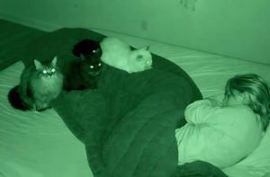 Vlasnica tri mačke primijetila je da se s njima događa nešto neuobičajeno. Sve tri mačke su noću počele dolaziti do njezine spavaće sobe, skakale su na krevet i dugo je gledale. U početku je ovo tumačila kao običnu mačju znatiželju, ali s vremenom je počelo djelovati čudno.