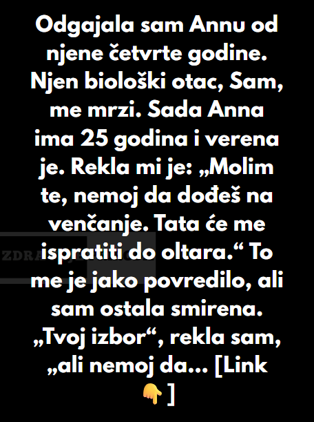 To me je toliko povijedilo. Ostao sam smiren i rekao sam joj “To je tvoj izbor ali sada ako imas pravog oca nek se on brine za sve za salu za organizaciju vjencanja, ja se povlacim. Neka on pokaze sada koliko mu je i da li mu je stalo…”