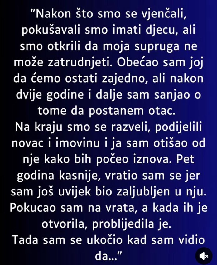 ALi onda kada smo krenuli da radimo na tome da prosirimo porodicu ti snovi su se polako rusili. Pregledi ljekari i mnogi testovi i onda hladne rijeci na papiru “Tu je neplodnost.” To je rijec koja je promijenila tada sve.