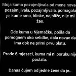 Kcerka mi se udala prosle godine i od tada sam mastala tiho da ce doci unucad. Jednog dana mi je ona rekla: “Mama ja sam neplodna…” Bila sam u tom trenutku u soku. “Neces dobiti dio mog nasljedstva.” rekla sam joj kao iz topa. Nedavno su usvojili djevojcicu. Kcerka me je tada pitala da li…
