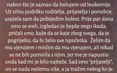 Ja sam varao svoju suprugu a sa njom sam imao troje djece. Kada je saznala za sve to pokusavala je na sve nacine da predje preko prevare. Ona je tada oboljela psihicki i tada je imala 2o kilograma manje sigurno oko 44 kilograma je tada imala ali ja se ni poslije toga nisam smirio. Jako…
