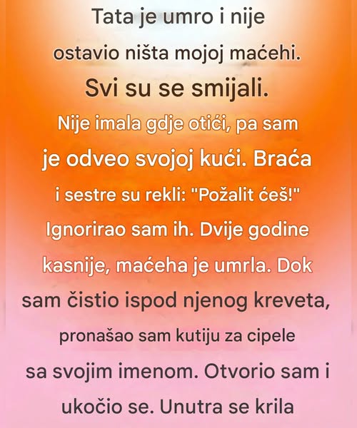 Moja maćeha nikada nije tražila pažnju. Nije se branila od predrasuda. Umjesto toga, pokazala mi je šta znači stvarno biti čovjek — kroz svoje postupke, kroz svoju prisutnost i kroz svoje tiho srce.