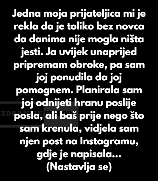“Prijateljica mi je rekla da danima nema novca da jede- Odbila sam dati svoju hranu kada sam vidjela njenu objavu na drustvenoj mrezi…”