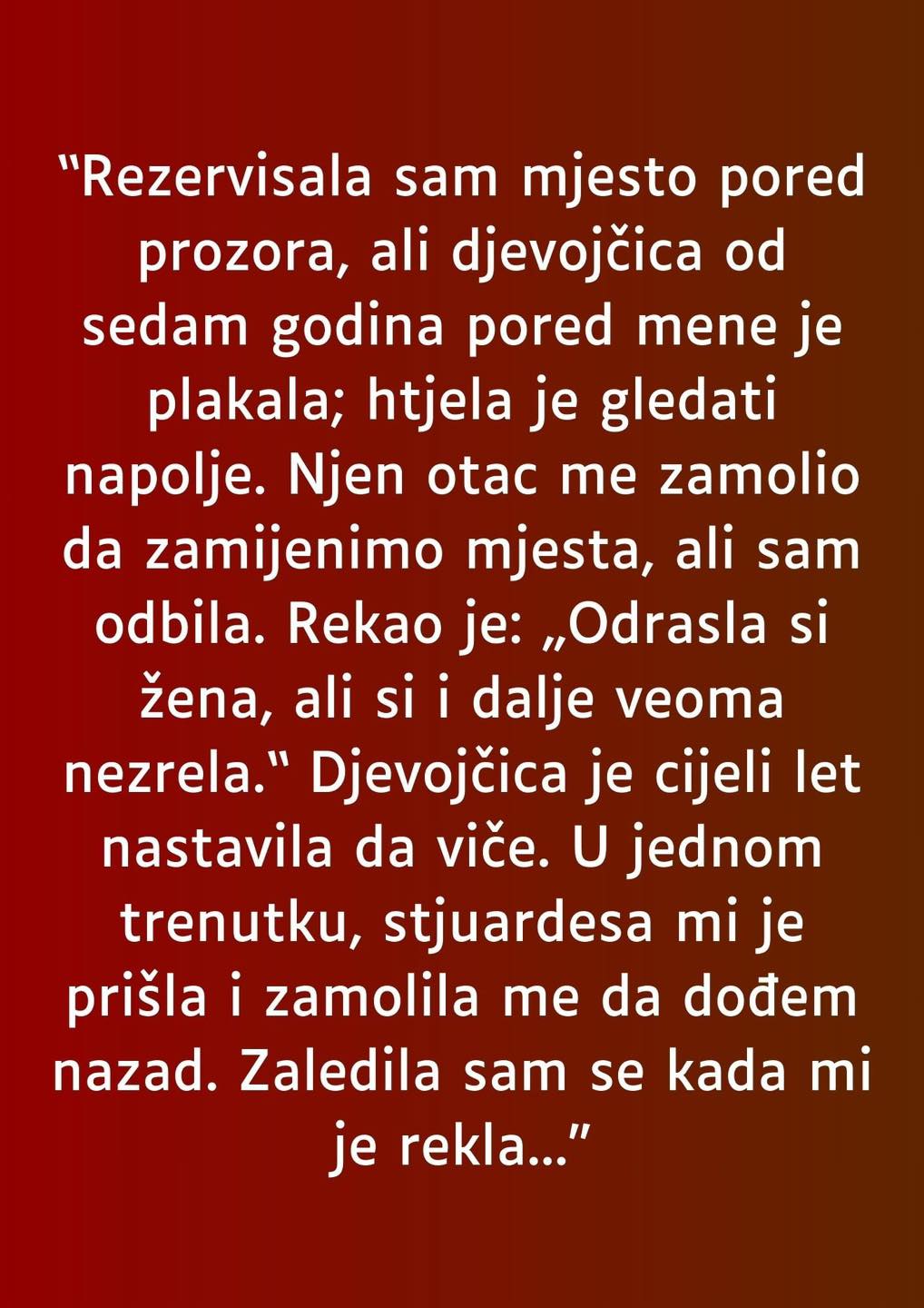 “Rezervisala sam i platila mjesto pored prozora ali djevojcica od 7 godina je plakala i zeljela moje mjesto- Vrijeme je da roditelji vaspitaju djecu…”