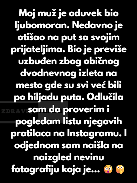 Onda sam odlucila da pregledam sve njegoev pratioce na Instagramu. Htjela sam da provjerim da li je neka dama objavila sliku sa njim. Njegove sposobnosti da krije su bile dobre ali ja sam bila detektiv. Naisla sam na jednu bezazlenu sliku koja je za kratko vrijeme potvrdila sve moje sumnje.