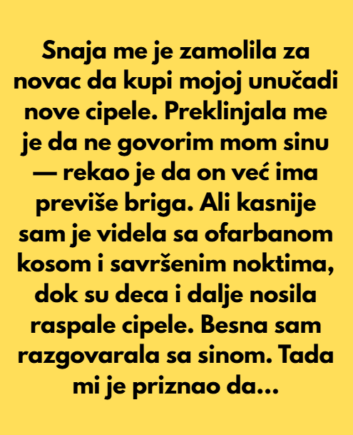 Unuci su i dalje nosili iste patike — kao da im novac na koji sam pristala nije ni kupio nove