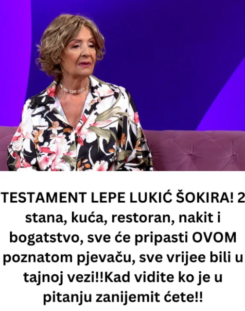 Lepa Lukić, simbol narodne muzike i žena čija je karijera trajala više od pola vijeka, nedavno je donijela odluku koja je ganula javnost širom regiona. Dok mnogi poznati razmišljaju o testamentima tek kad ih pritisnu godine ili zdravstvene nedaće, Lepa je to učinila iz jednog posebnog razloga – iz čiste ljubavi.