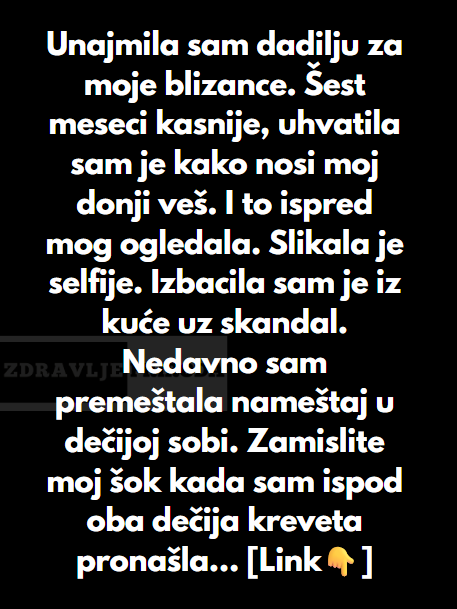 Ja sam unajmilja dadilju za moje blizance jer mi je bila prijeko potrebna. Djeca su je obozavala i ona je zaista dobro se snalazila u poslu. Ali samo sest mjeseci poslije uhvatila sam je da nosi donji ves moj. Ispred ogledala i slikala je cak i selfije sve u mom vesu.